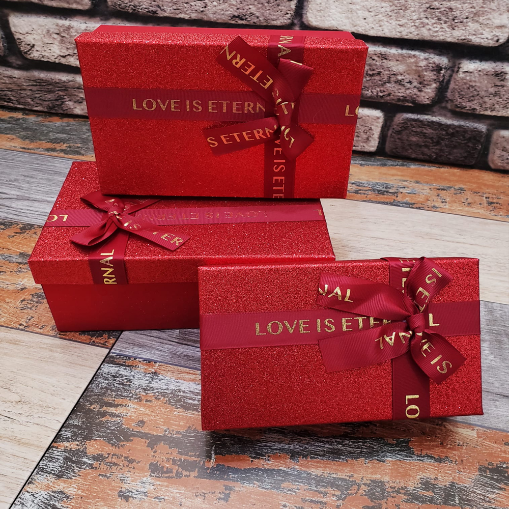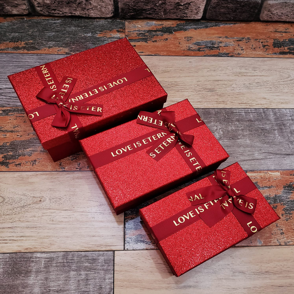 3'lü Dikdörtgen Simli Kırmızı Hediye Kutusu