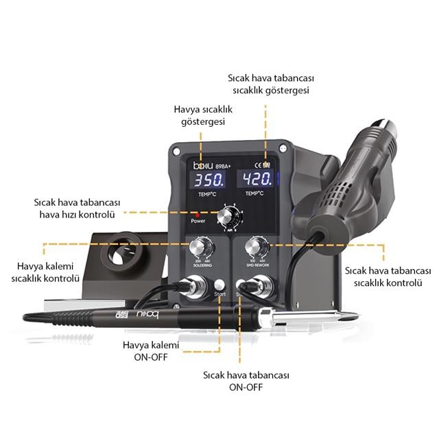 Baku Ba-898a+ Çif Led Ekranlı Isı Ayarlı+üflemeli Dijital Havya