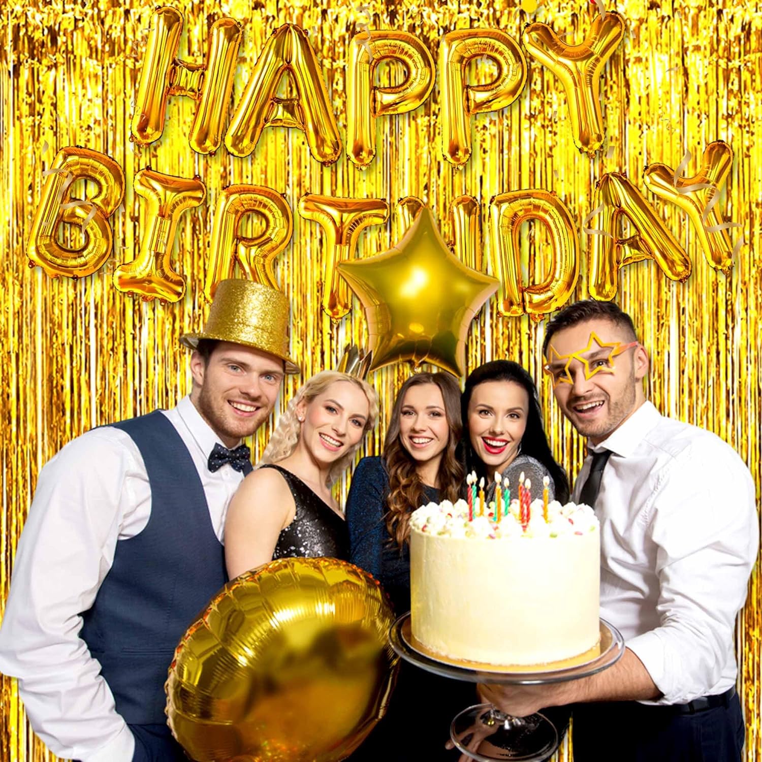Ekstra Metalize Parlak Saçaklı Arka Fon Perde Gold