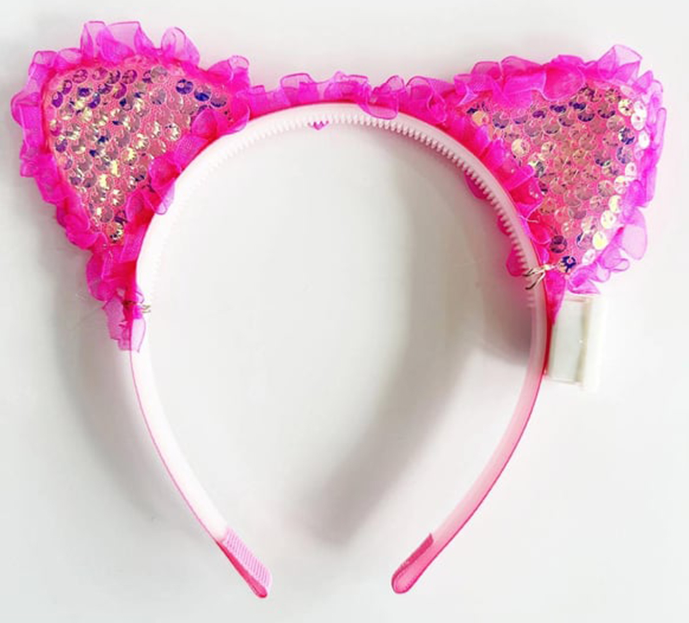 Fuşya Pullu Led Işıklı Kedi Kulak Taç