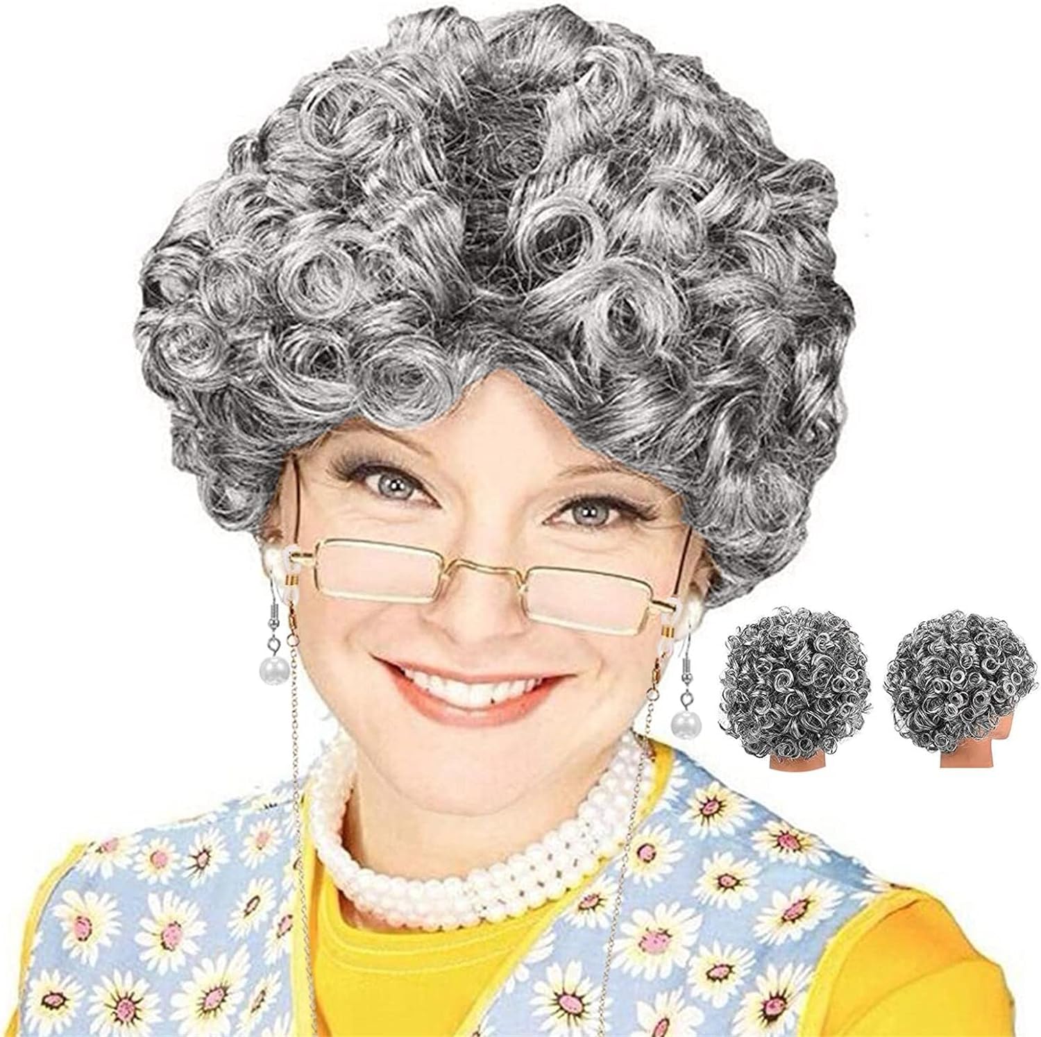Gri Kıvırcık Büyükanne Peruğu Astarlı Model