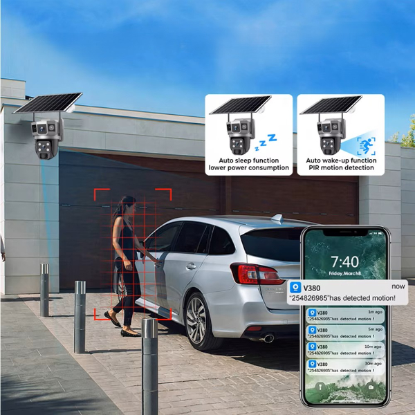 Güneş Enerjili Çift Lens Dış Mekan Güvenlik Kamerası
