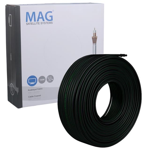 Mag Rg6/u6 Bakır Cu/cu 80 Tel Siyah Anten Kablosu (100 Metre)