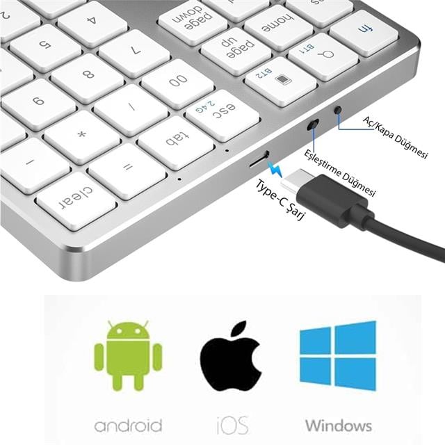 Powermaster Pm-26596 Mini Gümüş Bluetooth 5.2 Kablosuz 35 Tuş Klavye Genişletme Sayı Bloğu