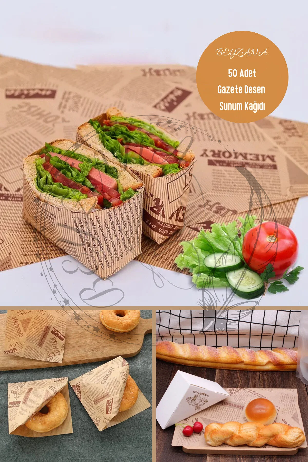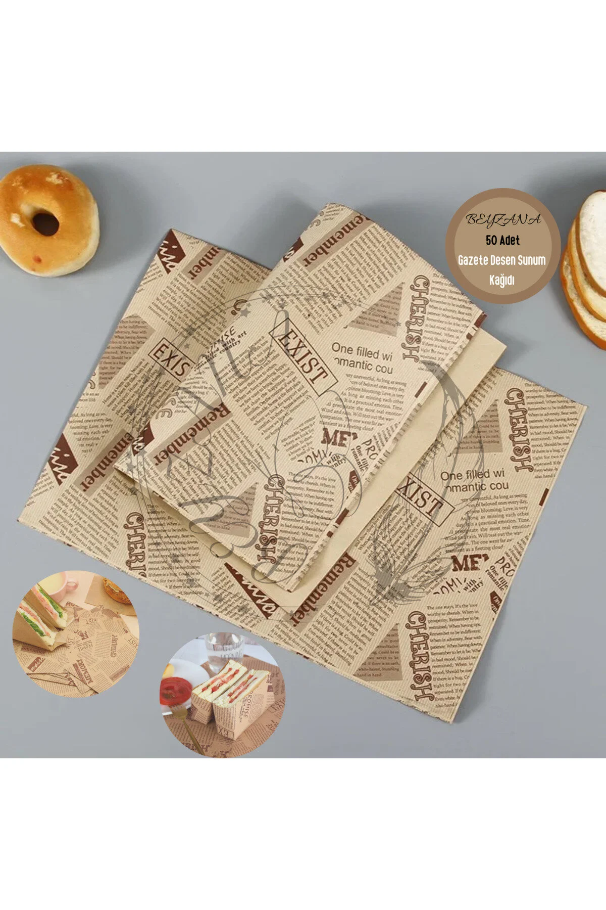 Vintage Gazete Desenli Sunum Kağıdı 50 Adet